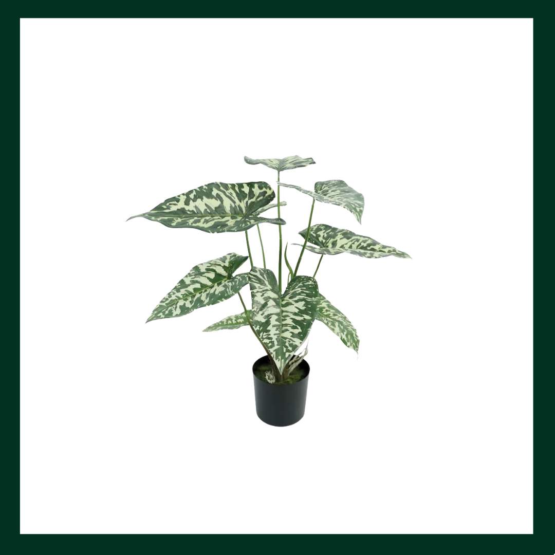 Η τεχνητή αλοκάσια αποτελεί μια εντυπωσιακή επιλογή διακόσμησης για όσους αγαπούν τα τροπικά φυτά και θέλουν να δημιουργήσουν έναν χώρο με χαρακτήρα και έντονη αισθητική. Τα μεγάλα, χαρακτηριστικά φύλλα της, με τη ρεαλιστική υφή και τις φυσικές αποχρώσεις, προσδίδουν μια αίσθηση εξωτικής φρεσκάδας που τραβάει το βλέμμα.
